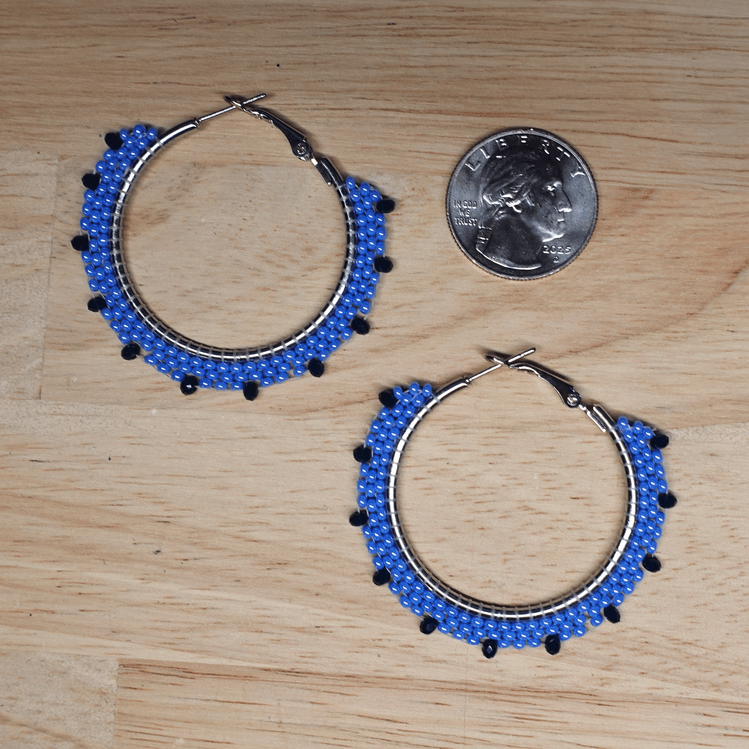 Beaded Hoop Earrings – Čík’ayela Kšúpi Čhaŋgléška – Azura Blue